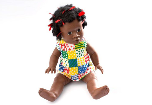 Missdela has curly black hair and wears a modern South African traditional fabric called “shweshwe” so named because of the ” swishing” sound it makes when the wearer walks.